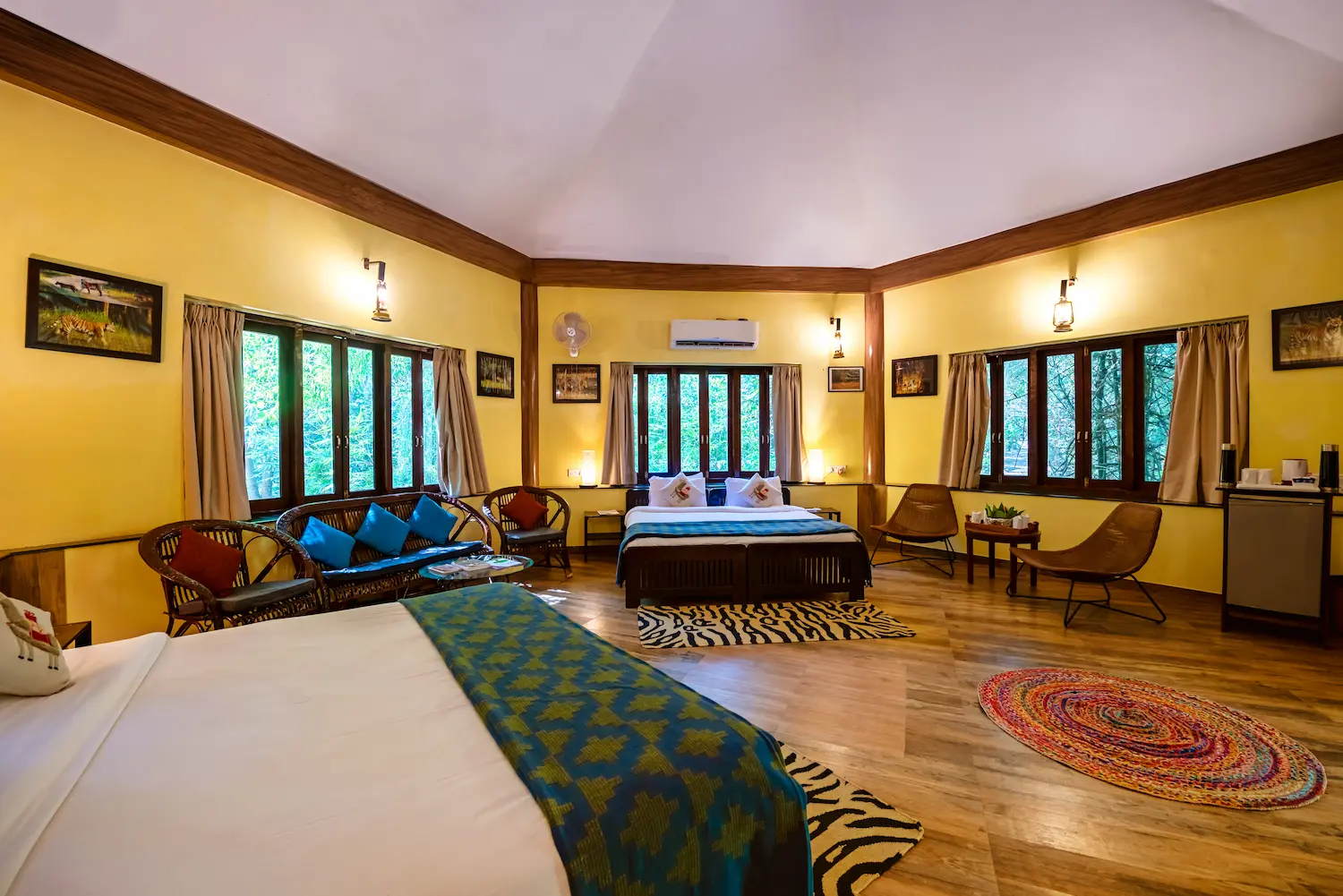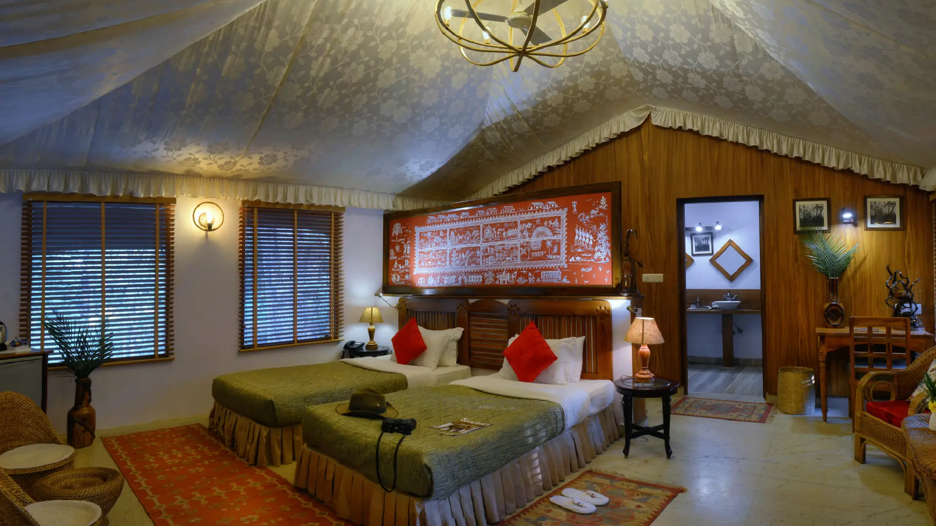 Located across the reception and dining area, our standard safari rooms offer all the comforts yet are easy on the pockets. Cozy-chic with modern amenities that only a few can parallel, the rooms provide an ideal mix of comfort and value for a discerning traveller. Some of these rooms are wheelchair friendly and suggested for senior citizens due to the proximity to the main building and the dining areas.