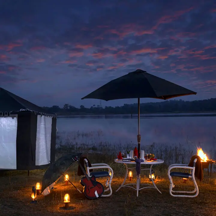 Unwind amidst the beauty of the setting sun near the serene waters of Khoka lake. Witness the calmness with the birds returning to their nests to roost, as you leave the drudgery of the city-life behind. A time for leisurely conversations and shared moments with your loved ones as you relish the delicious snacks and drinks especially prepared for you by our in-house chef.