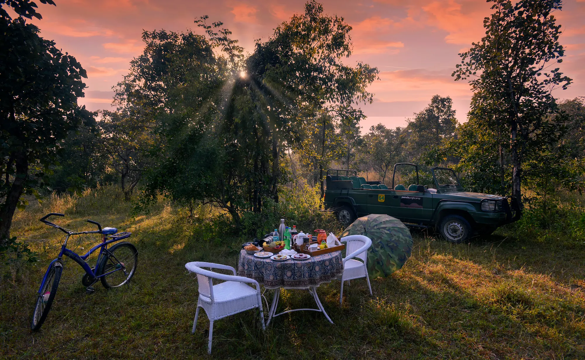 Rukhad, earlier known as Bison sanctuary serves as a buffer zone of Pench National Park. What sets Rukhad apart from other zones is that it also connects Pench National Park with Kanha National Park, thus serving as a corridor for wildlife between the two forest reserves. Unlike other areas of Pench National Park, Rukhad is open throughout the year and does not get closed during the monsoon season of July to September. The primarily teak and bamboo trees provide a perfect backdrop to experience the teeming wildlife in these forests. 1. Cycling Tour This excursion is for passionate wildlife and adventure seekers who want to move beyond the traditional jeep safaris to explore the jungles of Central India. The guided cycling tour starts from Pench Jungle Camp after an early breakfast in the morning and finishes at Sakata forest lodge. Covering a distance of appx. 45 kms, you cross through village hamlets and enter the forests. The tour ends in the afternoon at Sakata Forest Lodge, a colonial era rest house built inside the forest. Enjoy the delicious hot lunch after which you can opt for a jeep safari and then ride back to the lodge. 2. Drive to Rukhad Enjoy the lush landscapes of Rukhad as you spend a morning or an evening drive. This tour is for the people who wish to enjoy the forests of Rukhad without the additional physical exertion. You leave Pench Tree Camp in the morning and explore the forests of Rukhad on a jeep safari. 3. Overnight stay in the Forest at ‘Machaan’ A truly immersive, one of a kind experience that lets you stay inside the forest for the night. Inspired by the ‘machaans’ of the yesteryears, we have built a small cottage on top of the machaan inside the Rukhad sanctuary. This is done to provide safety and comfort. Your experience starts with a drive from the lodge to the gates of Rukhad Sanctuary followed by a guided nature walk until you reach the machaan for an overnight stay. The dinner comprises of piping hot food served by our team. Listen to the sounds of the forests at night or see the nocturnal wildlife at a distance as you stay cocooned inside. This experience allows you to experience the jungle in a most intimate manner. It truly doesn’t get better than this!