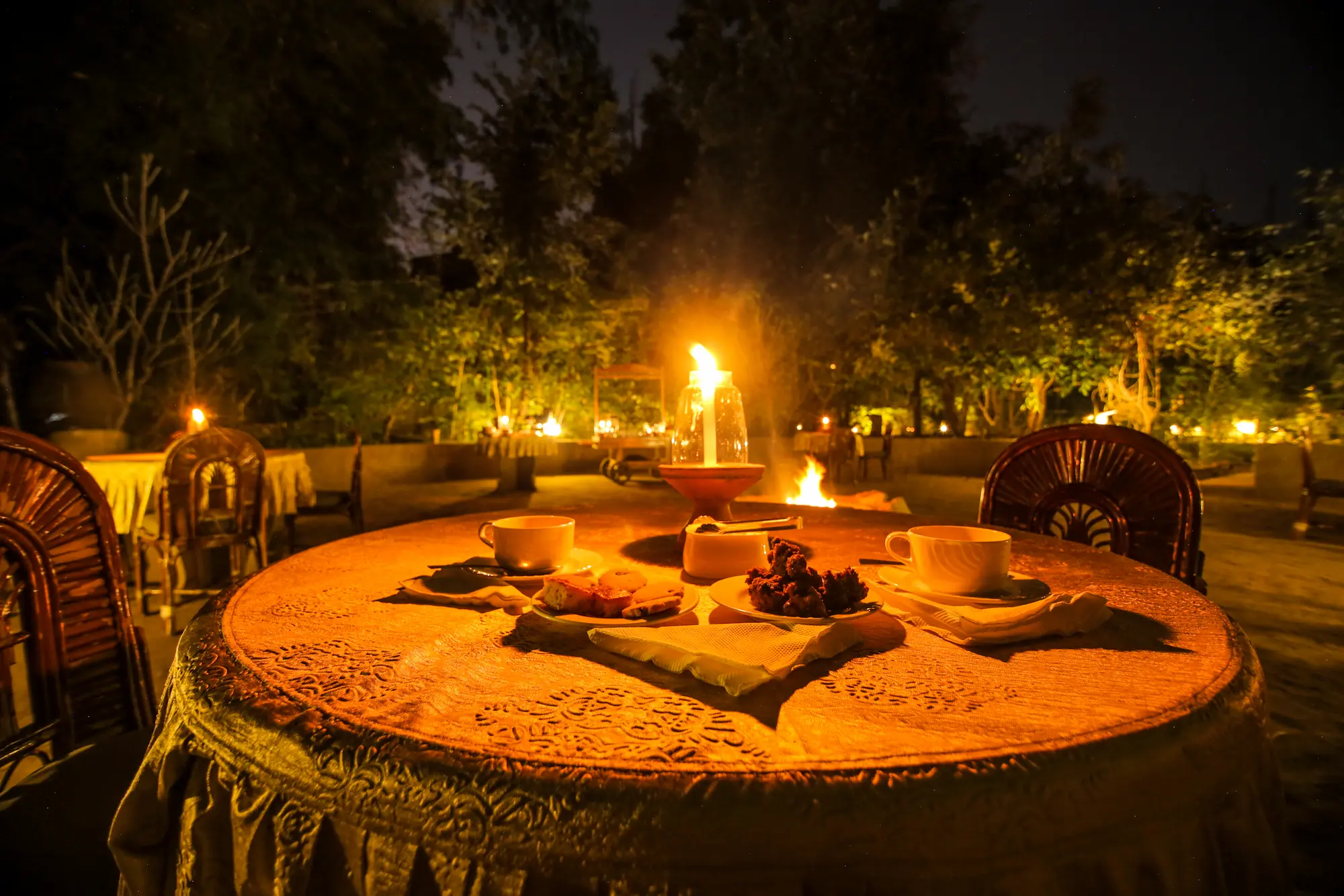 The camp has a multi-cuisine restaurant that serves a variety of dishes including Indian, Continental, and local delicacies. Special meals like barbecue and outdoor dining experiences can also be arranged.